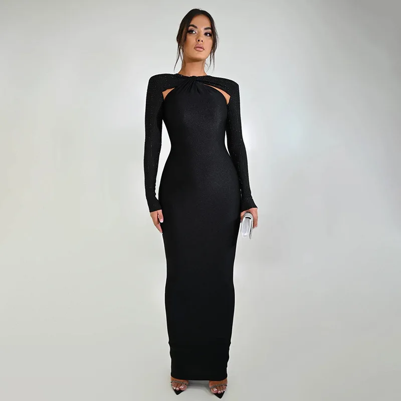 As mangas longas com detalhes refinados oferecem um toque de brilho sutil, enquanto o corte justo e o comprimento longo transmitem poder e sofisticação. Seja em eventos sociais, festas ou ocasiões especiais, este vestido garante que todos os olhares estejam voltados para você.